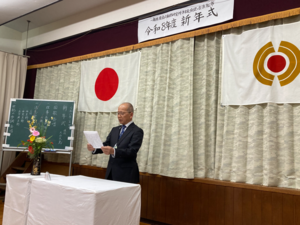 令和8年1月4日(日)早朝6時 相生町公民館で新年式を執り行った。国家斉唱、会長代読による理事長新年のご挨拶に続き、各支部長が新年の抱負を述べ個人個人の今年の目標や決意を発表した。(参加者16名)